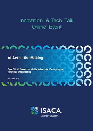 Fokus Event am 25. November 2024 in Bonn - KI-Audit - ein Audit wie jedes andere IT-Audit auch? Am 25. November 2024 fand ein gemeinsames Fokus Event mit der Deutschen Telekom in der Telekomzentrale in Bonn zu dem Thema: "KI-Audit - ein Audit wie jedes andere IT-Audit auch?" statt. Hier könnt Ihr den Vortrag der Fachgruppen Artificial Intelligence und IT Revision herunterladen. Intro und ISACA News Details Kategorie: Präsentationen Jahr: 2024 Thema: Künstliche Intelligenz Herunterladen